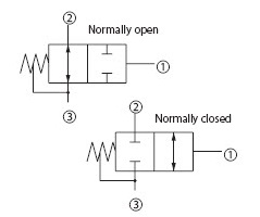 3-Way, 2-Position, Spool |  | | Commonly used for control of single-acting cylinder, clutch, or brake, circuit selector valve, or pilot for a large directional spool valve. | | | | | |